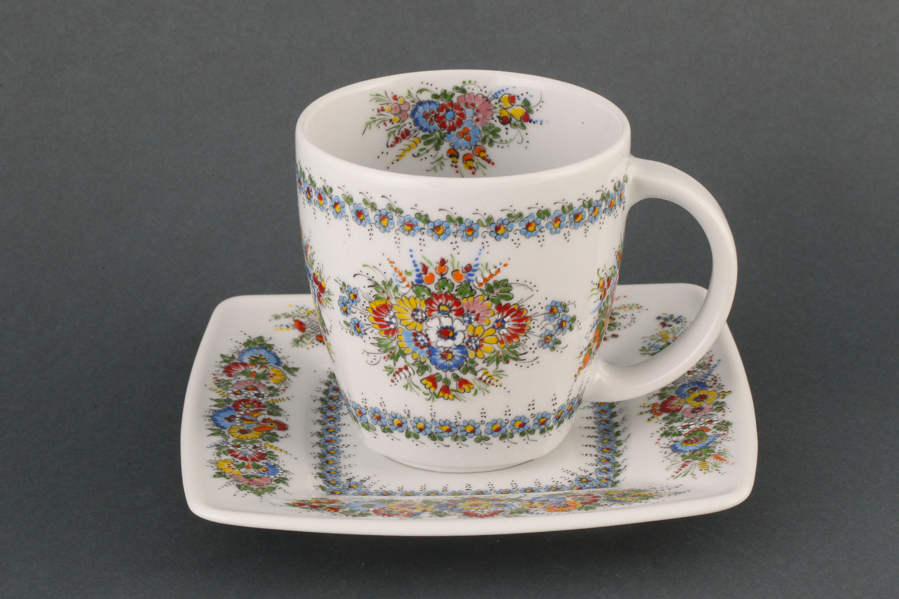 W 1963 r. w trakcie obrad jury Wojewódzkiego Konkursu Kroszonkarskiego muzealnicy oraz pracownicy opolskiej Cepelii zadecydowali aby podjąć działania zmierzające do przeniesienia tradycyjnego wzornictwa z kroszonek na bardziej trwały materiał. Realizacji tego pomysłu podjęli się etnograf Czesław Kurek oraz prezes opolskiej Cepelii Jan Matysek, który zlecił przeprowadzenie w spółdzielni prób zdobniczych na niskogatunkowym porcelicie z zakładu w Tułowicach. Do działań tych wyznaczona została utalentowana opolska twórczyni ludowa Stefania Okos. Na uprzednio natryskiwanych na mokro przez producenta i odpowiednio posuszonych naczyniach za pomocą specjalnie zaostrzonego patyczka wyryła drobne kwiatowe wzory w formie szlaczków. Po dostarczeniu asortymentu do pracowni spółdzielni całość została wypalona w piecu ceramicznym. Początkowo opolska Cepelia nie otrzymała zgody na rozpoczęcie produkcji, gdyż centrala uważała malowanie na porcelicie za technologię nazbyt nowoczesną. Pozytywna opinia znanego polskiego etnografa prof. Romana Reinfussa zadecydowała o zmianie stanowiska Warszawy. Powierzchnię porcelitu natryskiwano farbami w tonacji: granatowej, czarnej, ciemnobrązowej, bordowej, ciemnozielonej. Z czasem do drapania zaczęto używać specjalnie zaostrzonych końcówek drewnianych obsadek od stalówek. Żeby zmniejszyć straty przygotowywanego asortymencie w trakcie transportu, proces natryskiwania farb przeniesiono do pracowni Cepelii. Kolejny etap rozwojowy tej technologii stanowiło nanoszenie na wydrapane miejsca farb w kilku kolorach, co sprawiało, że cała kompozycja stawała się bardziej barwna. Po przeprowadzeniu kontroli jakości wyroby załadowywano do piecy ceramicznych i wypalano w temperaturze 800 º C.