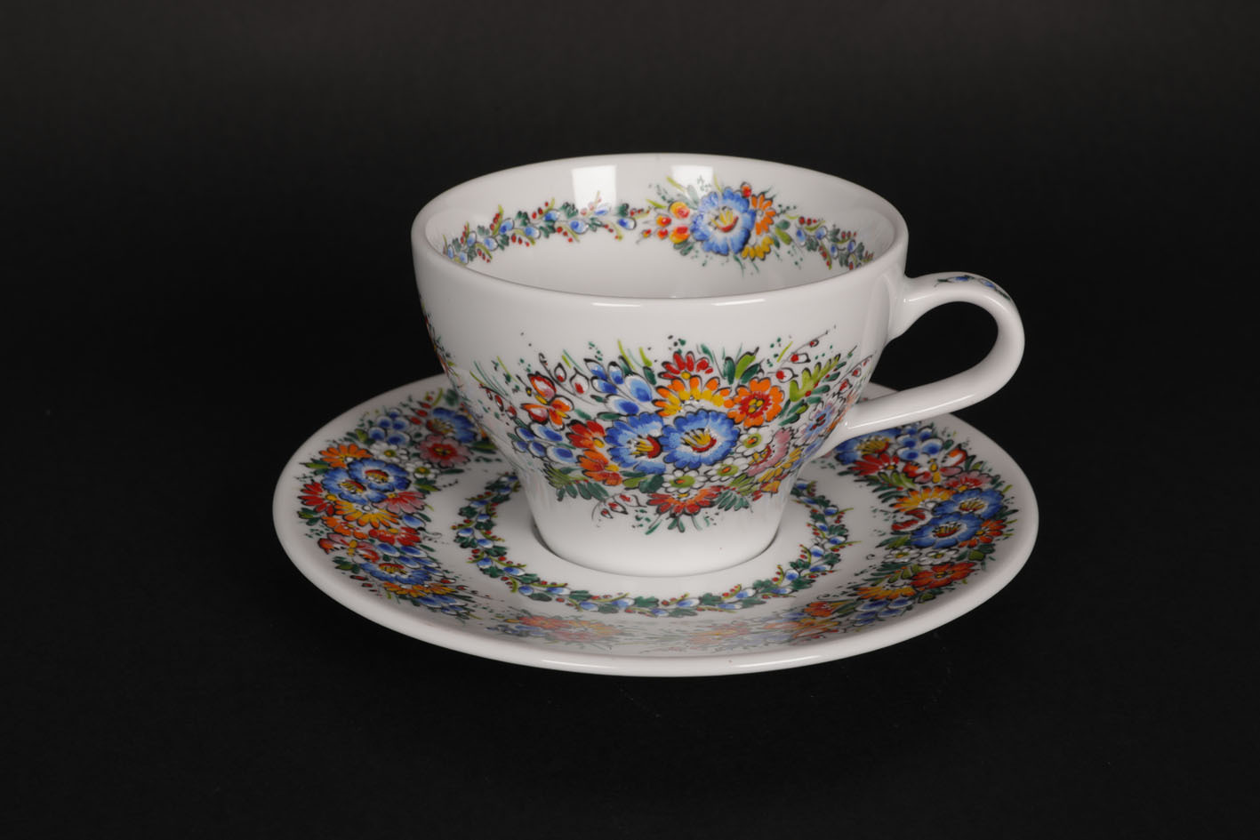 Próby na porcelanie rozpoczęto w drugiej połowie lat 60. XX w. Zadecydowała o tym znacznie wyższa jakość tego surowcu w stosunku do porcelitu. Gotowe szkliwione naczynia zakupywano w zakładach w Wałbrzychu i Jaworzynie Śląskiej. W 1968 r. opracowano nową technologię, stanowiącą kanon wytwarzania współczesnej opolskiej malowanej porcelany. Powierzchnię naczynia zdobi się przy użyciu stalówki z obsadką. Najpierw twórczynie rysują kompozycję, stosując czarną farbę naszkliwną. Żeby była ona czytelniejsza, pomiędzy ornamenty wprowadza się wolną przestrzeń. Część twórczyń maluje wzór części środkowej i przy jego krawędziach, pozostawiając wolne przestrzenie pomiędzy nimi, po to aby kompozycja była czytelniejsza. Jeszcze inne zwłaszcza te starsze tworzą pełną, dookolną kompozycję ze szlaczkami przy dolnej i górnej krawędzi naczynia. Do nakładania kolorów bardzo często używają starych, zużytych stalówek, posiadających znacznie szersze zakończenie. Podobnie jak w przypadku tworzenia kroszonek podczas malowania powierzchni obowiązuje reguła od szczegółu do ogółu, czyli najpierw zdobi się środek kwiatka a na końcu obrzeża płatków. Farby naszkliwne są mieszane z terpentyną balsamiczną lub z tzw. balsamem, w skład którego wchodzą: kalafonia, olej wrzecionowy i terpentynę balsamiczna. Malowania kompozycji dokonuje się przez nakładanie warstw poszczególnych kolorów tj.: najpierw żółty, później czerwony, niebieski itd. Pod koniec lat 60. I na początku lat 70. twórczynie wykonywały duże czytelne malunki z pięknymi kwiatami i wiciami roślinnymi. Zatrudnienie dużej ilości nowych pracowników w połowie lat 70. spowodowało znaczny wzrost produkcji oraz rywalizację. To wówczas zaczęło się rozpowszechniać bardzo drobne i zagęszczone wzornictwo spotykane we współczesnych wyrobach.. Malatury na naczyniach w niczym już nie przypominały przejrzystych, prostych wzorów z kroszonek. Na opolskiej porcelanie pojawiały się wzory jednobarwne, cieniowane (brązowe, niebieskie, czarne), dzisiaj już rzadko spotykane. Kolorem podstawowym w przypadku kompozycji barwnych stał się niebieski, jako uzupełnienie stosowano czerwień, pomarańcz i zieleń a dopełnienie całości stanowiły żółty, biały niekiedy brąz, fiolet. W malunkach dominuje ornamentyka roślinna w postaci wici roślinnych liści i mniej lub bardziej fantazyjnych kwiatów. Niektóre z twórczyń dekorują porcelanek drobne motywy zoomorficzne tj.: pszczoły, biedronki, motyle, ślimaki, ptaszki. Po podsuszeniu naczynia wkłada się do pieca, gdzie są wypalane w podobnej temperaturze jak w przypadku porcelitu. Opolska Cepelia przez wiele lat organizowała wewnętrzne konkursy zdobniczek porcelany. Uzyskiwana gratyfikacja finansowa miała niewątpliwie wpływ na podnoszenie kwalifikacji zawodowych pracowników. Niestety pod koniec lat 90. spółdzielnia zaczęła się borykać z problemami finansowymi, w efekcie czego w 2006 r. ogłosiła upadłość. Tym samym został zakończony pewien etap działań opolskich malarek porcelany. Niektóre z nich próbują nadal tworzyć, a inne z powodu zlikwidowania firmy pracodawcy zaprzestały działalności. Pomimo tego malowana porcelana jest stale obecna jako popularny artefakt w galeriach dawnej Cepelii i innych sklepach na terenie całego kraju. Aktualnie zauważalny jest powolny wzrost zainteresowania ręcznie dekorowanymi wyrobami. Funkcjonujące na rynku pracownie to firmy jednoosobowe. Dzięki kontaktom z regionalnymi władzami, jednostkami kultury twórczynie mają możliwość uczestniczenia w imprezach plenerowych oraz pokazach w kraju i zagranicą, gdzie prezentują ten unikalny opolski wytwór. W chwili obecnej na Opolszczyźnie mieszka około 40 malarek porcelany.
