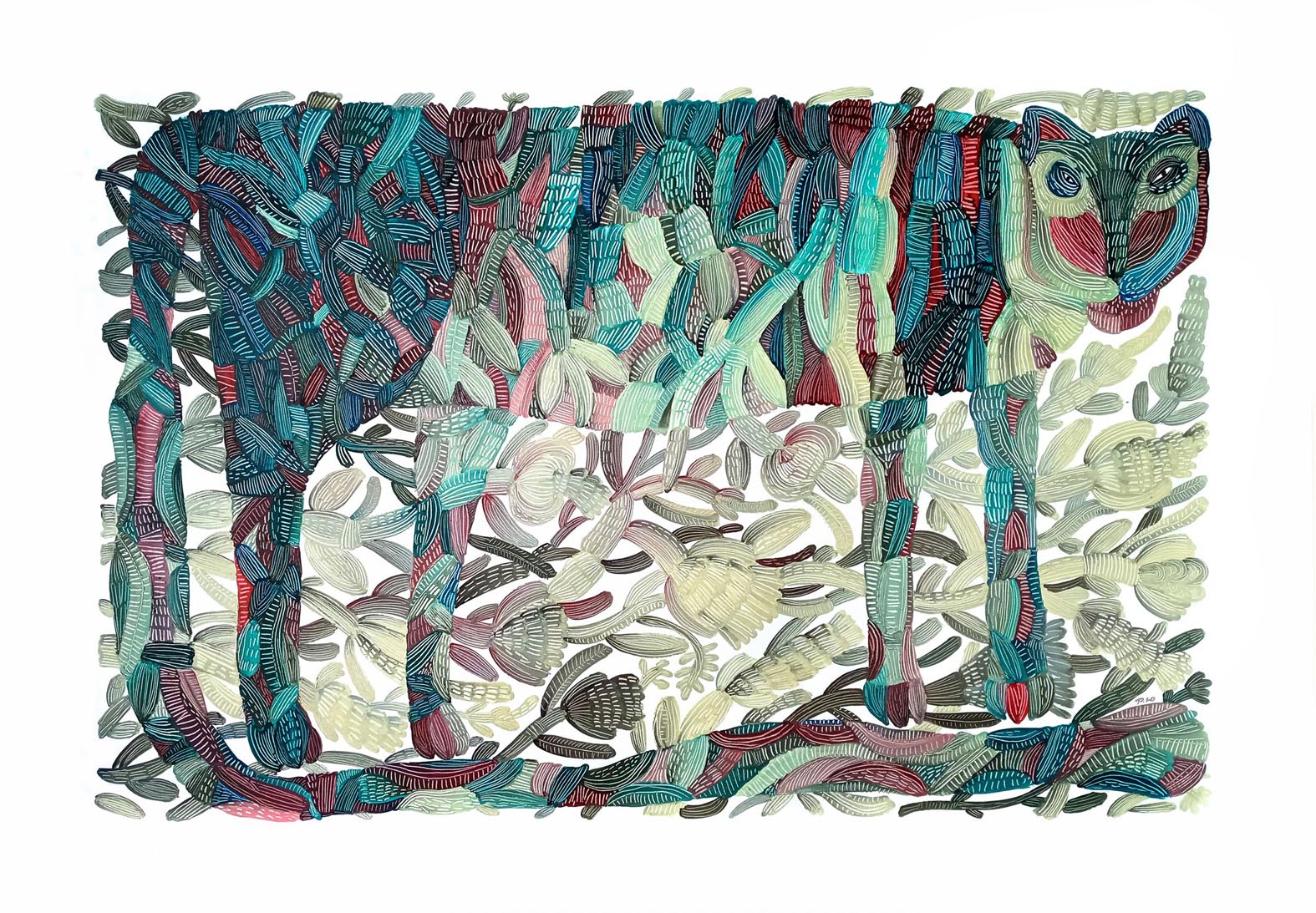 Paweł Jagiełlo pisze: Głównym motywem w pracach Dunaievej są zwierzęta. Choć szczerzą zęby i pokazują swą dziką naturę, zazwyczaj nie wydają się nam niebezpieczne. Są jak opiekuńcze duchy, albo totemy przodków zwierzęcych – groźne jedynie dla naszych prześladowców. Zdają się one przechadzać wśród rajskiej przyrody, gdzie człowiek wciąż jeszcze nie odcisnął swojego piętna (albo zostało ono już dawno zatarte). To świat baśniowy – fantastyczny lub oniryczny – który kusi swą egzotyką i daje dziwne poczucie siły. Artystka odwołuje się bowiem do tkwiącej w człowieku tęsknoty za dzikością i prostotą świata przyrody. (…)Płaska forma, uproszczona anatomia i wyrazista kolorystyka umieszczają te prace w rejonach prymitywizmu z wyraźną inspiracją folklorem i nurtami ekspresjonistycznymi. Otoczone roślinnością drapieżniki łączą w sobie surowość sztuki ludowej z energią godną fowistów.